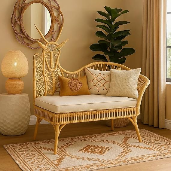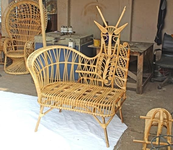 Handcrafted Vintage Wooden Sofa for Living Room & Office | Natural Finish Modern Cane Furniture